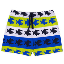 Детские джинсовые шорты свободного кроя для мальчика. Модель выполнена из светло-синего денима и дополнена удобным эластичным поясом со шнурком. Два классических боковых кармана и два накладных кармана-карго по бокам. Задний карман — декоративный.