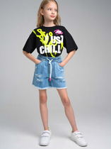Шорты трикотажные с принтом Disney. Размер изделия на фото - 140, параметры модели (см): рост 143, обхват груди-талии-бедер: 68,5-60-70. Высокое содержание хлопка 95%. Благодаря наличию эластана в составе ткани изделие проще в уходе и держит форму. Эластичный пояс со шнурком.