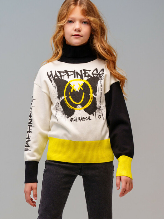 Свитер для девочки подростка. Свитер из вязаного трикотажа с добавлением вискозы. Модный свитер жаккардовой вязки с высоким содержанием вискозы. Вискоза хорошо поглощает влагу, отлично пропускают воздух. Изделия приятны к телу, и не вызывают раздражения.  Модель из капсульной коллекции DIGITAL TRANSFORM (ДИДЖИТАЛ ТРАНСФОРМ). Соберите полный образ в едином стиле!