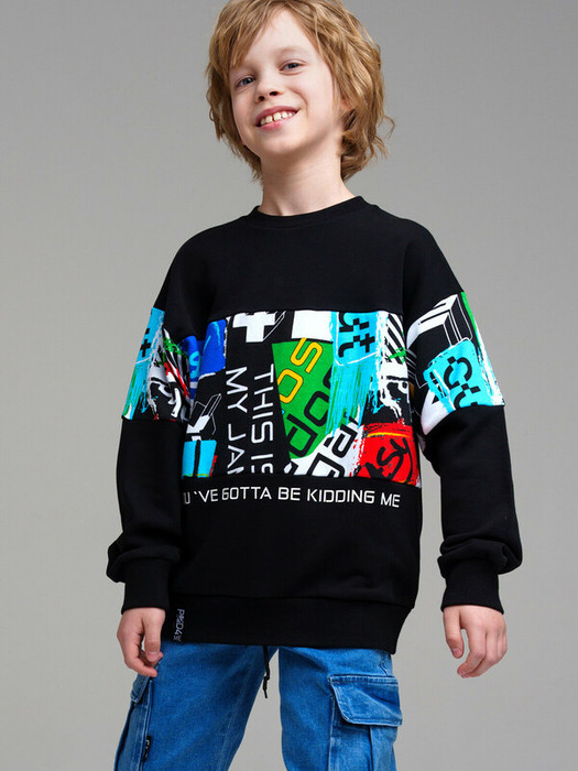 Свитшот из french terry для мальчика. Посадка comfort fit – свободный крой. Манжеты и нижняя кромка в эластичный рубчик.