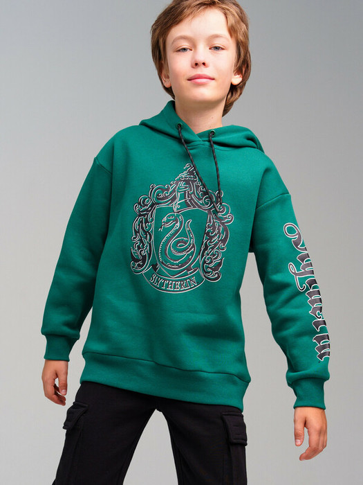 Толстовка из футера с начесом для мальчика подростка. Модное худи из флиса с высоким содержанием хлопка. Подростоковое стильное оверсайз худи с символикой факультета "Слизерин" из "Гарри Поттера". Модель из капсульной коллекции MY WAVE (Май ВЭЙВ). Соберите полный образ в едином стиле! Модель выполнена из качественного и приятного на ощупь трикотажа.