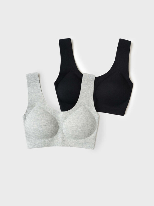 Набор два топа-бра без застежек для девочки подростка. Бесшовная технология. Изделие выполнено из эластичного трикотажа и имеет мягкие формованные чашечки для дополнительного комфорта. Внутри по низу предусмотрена эластичная тесьма для лучшего прилегания к телу.