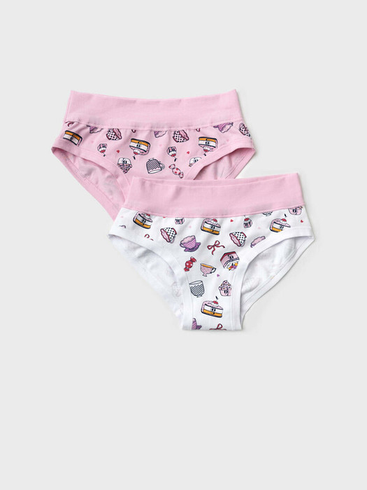 Набор из двух трусов-брифов для девочки подростка. Дизайн с любимыми сладостями - капкейками и конфетами. Изделия выполнены из мягкого эластичного трикотажа, с широкой розовой резинкой по поясу и окантовкой по вырезам для ног. Внутри предусмотрена ластовица.