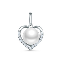 Подвеска из серебра с культивированным жемчугом и фианитами родированная 411082