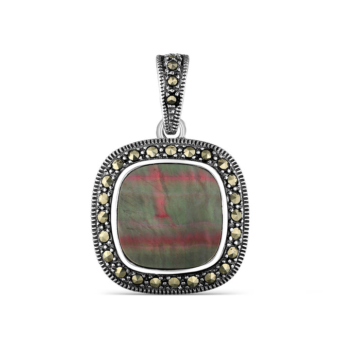 Подвеска из чернёного серебра с натуральным перламутром и марказитами 925 пробы