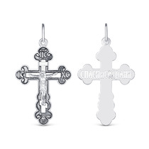 Крест православный из чернёного серебра - Спаси и сохрани 3,9 см 925 пробы 1-008