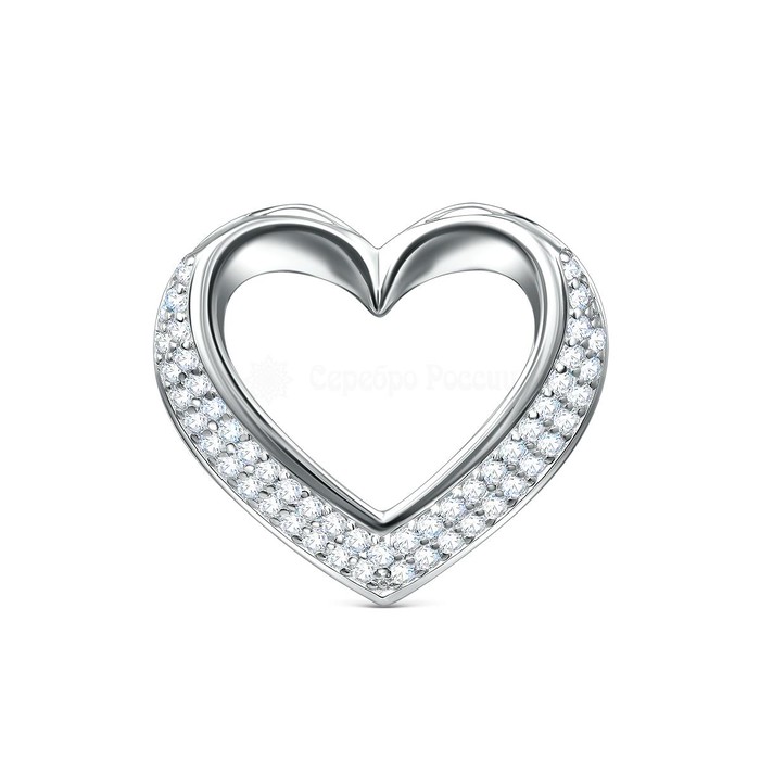 Подвеска сердце из серебра c фианитами родированная