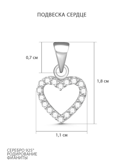 Совместные покупки Магнитогорск Ювелирные украшения и бижутерия Подвески — Подвеска Сердце из серебра с фианитами родированная 925 пробы 3765р200