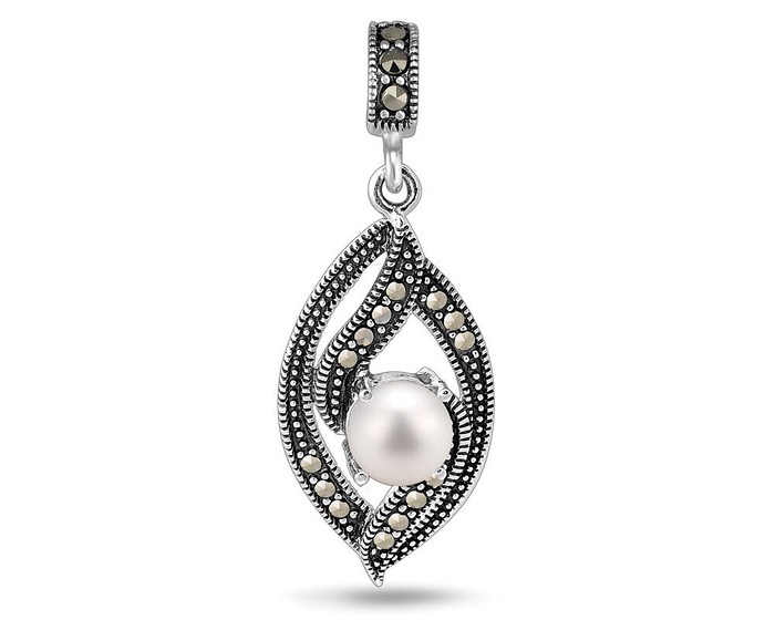 Вес: 3.32 г Вставка: Марказит Цвет камня: Белый Производство: Таиланд Покрытие: Оксидирование Количество: 7Подвеска, арт.656366 Серебро Серебро 925, 3,32 гр., жемчуг , марказит