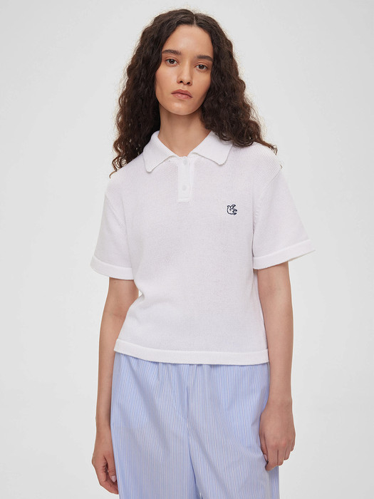 Совместные покупки Магнитогорск Женская одежда Джемперы, свитеры, водолазки — Поло с коротким рукавом из хлопка с вышивкой, белый