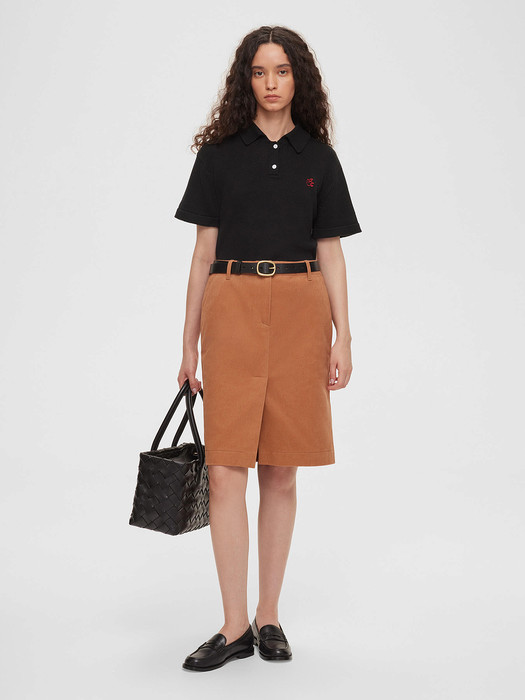 Поло с коротким рукавом, отложным воротником, застежкой на пуговицы и контрастной вышивкой по переду.