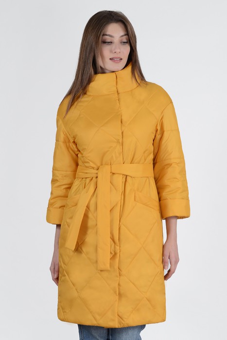 Ультрамодное демисезонное пальто с крупной ромбовидной стежкой по полочке и горизонтальной стежкой по спинке. Воротник стойка создают современный лаконичный дизайн, модель дополнена поясом, что сделает вашу весну теплой и комфортной. Рукав 7/8 с отложной манжетой,со спущенным плечом. Центральная застежка на потайные кнопки. Карманы - листочки . Длина пальто по спинке ок.95см. Длина рукава от горловины ок.60см. Рост 170 см Состав: полиэстер - 100%, утеплитель: Air Twin Light 100 г/m2 Р-ры 42-52 Цвет: охра Цвет одежды может незначительно отличаться от оригинала.