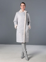 Ультрамодное пальто полуприлегающего силуэта с втачным рукавом и высоким воротником-стойкой, фигурная линия борта и крупная ромбовидная стежка не оставят равнодушными. Изделие с застежкой на потайные кнопки в золоте. Длина по спинке -ок.87см, длина рукава-ок.64см. Рост 170 смР-ры: 42-52Состав: полиэстер 100%, утеплитель: Air Twin Light 100 г/m 2Цвет- молоко