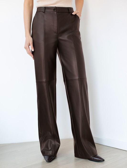 Состав: 100%ПУ (полиуретан) Плотность: 320 Г/м2 Размер товара на первом фото: 42Идеальный выбор для создания модного и комфортного образа. Брюки коричневого цвета выполнены в классическом прямом крое, который подчеркивает силуэт и подходит для любого типа фигуры. Модель оснащена удобной обтачкой пояса мягкой изнанкой, что обеспечивает максимальный комфорт при носке. Искусственная кожа высокого качества придает изделию эффектный вид.