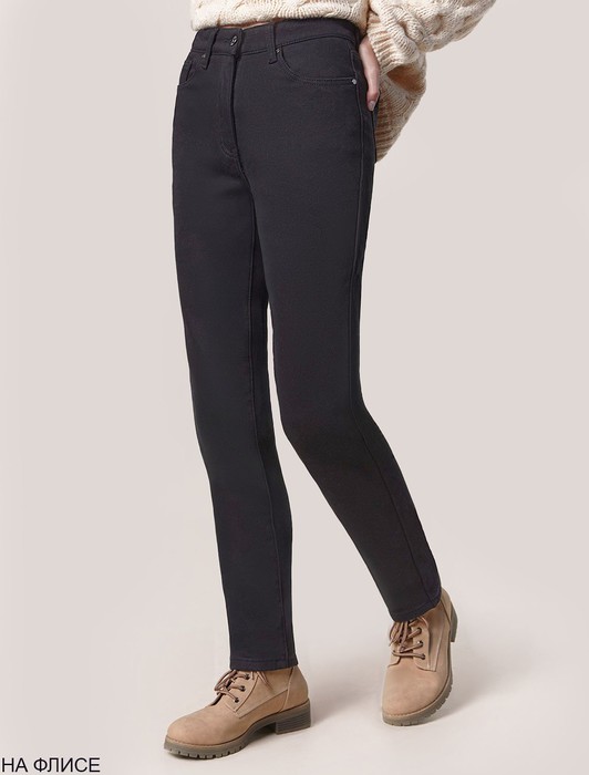 Состав: 82%Хлопок 16%ПЭ 2%ПУ Плотность: 17.2 OZ Параметры модели на первом фото: Рост 172, бюст 88, талия 64, бедра 88Черные прямые джинсы выполнены из эластичного денима. Внутренняя сторона изделия утепленная мягким флисом обеспечит тепло, комфорт и защиту от холода. Модель стандартной длины с классической посадкой на талии визуально вытягивает силуэт. Лучший вариант для зимнего периода, когда хочется выдержать стиль и практичность.