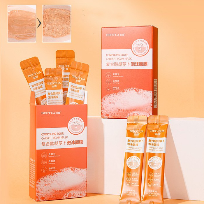 Совместные покупки Магнитогорск Косметика и парфюмерия Прочий макияж — Пузырьковая маска для лица с экстрактом МОРКОВИ Beotua, НАБОР 12 ШТ. по 4 мл.