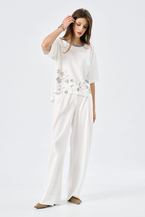 Брюки-палаццо свободного силуэта с карманами. Пояс притачной, застежка центральная на тесьму-молнию. Возможно отличие фотографии по оттенку, связанное с разной цветопередачей монитора.
