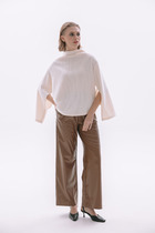 Элегантные брюки со стрелками- вытягивают фигуру. Модель на частично притачном поясе,собранном на эластичную тесьму по спинке, выполнена из приятной, однотонной ткани с добавлением вискозы. Акцентом в брюках являются отделочные пояски с пуговицам в тон. Спереди застёжка на молнию и петлю-пуговицу и функциональные косые карманы. Сзади - два кармана с листочками.