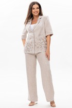 Линия верха брюк обработана поясом в сгиб с хорошим растяжением.