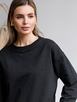 Свитшот из эластичного футера с принтом стразами