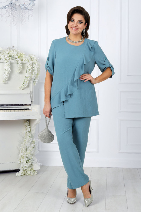 Этот женский костюм — идеальный выбор для летних дней, выполнен из легкой однотонной ткани, обеспечивая комфорт и стиль. Сочетание легкой ткани, изящного дизайна блузки с воланом и классических брюк делает этот костюм универсальным решением для различных событий. Он подходит как для офисного дня, добавляя деловой шик вашему образу, так и для торжественного мероприятия, придавая вам элегантности и утонченности.