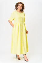 Платье полуприлегающего силуэта. Застежка на кнопки спереди. Воротник рубашечный. Рукав вточной. Длина платья - миди.