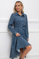 Платье приталенного силуэта изготовлено из высококачественного материала с вискозой, что обеспечивает комфорт в течении дня. Отложной воротник, втачной рукав 3/4 - современные детали помогают выглядеть стильно, при этом сохраняя строгость и лаконичность образа. По спинке застежка молния. Платье дополнено поясом из основной ткани