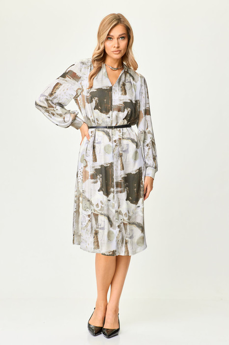 Струящееся шифоновое платье (в этой модели мы используем новое качество шифона с легким благородным блеском), длинной ниже колена, трапециевидного силуэта с V-образным вырезом горловины, переходящим в небольшую стойку по спинке. От плечевого шва у горловины – складка. Платье хорошо подходит на разные типы фигур, так как оно  без нагрудным вытачек и без подрезов на талии, приталить  платья легко за счет ремня, который идет в комплекте с платьем. Рукав платья втачной, с легкой сборкой у манжеты. Манжета застегивается на петли и пуговицы. По центру переда – шов. Все линии платья служат тому, что бы “вытягивать” фигуру придавая ей легкость и стройность. Платье отлично подойдет для различных мероприятий, как для праздников, так и для офисный будней. Платье на трикотажной подкладке.