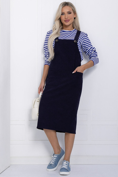 Классический сарафан на бретелях представлен в длине миди, что создает эффектную и гармоничную силуэтную линию. Выполнен из микровельвета, этот сарафан обеспечивает мягкость и комфорт при носке. Накладные карманы добавляют удобства и уникальности внешнему виду, а широкие бретели позволяют создать акцент на плечах и подчеркнуть вашу женственность, на них выполнены по две петли для регулировки длины сарафана. Однотонный дизайн предлагает безграничные возможности для создания различных образов на работу или для делового события в офисе. Вы можете дополнить его аксессуарами или просто носить в классическом варианте.