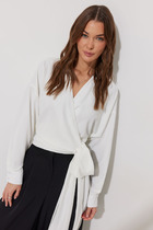zara TOP LINO MANGA CORTA ZW COLLECTION OCRE