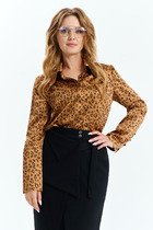 Блузка женская прямого силуэта. Перед с нагрудными вытачками, с накладными нагрудными карманами, спинка цельная. Воротник рубашечный на стойке, застежка по переду на петли и пуговицы. Рукава втачные одношовные с декоративной планкой и манжетами по низу, застегивающимися на петли и пуговицы.