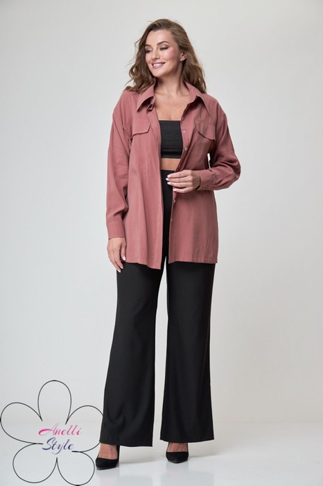 При съемке в образе использованы изделия бренда ANELLIstyle – брюки 1293.2 и  топ 767