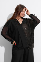 Рубашка прямого свободного кроя. Выполнена из хлопкового (смесового) полотна нежно-розового цвета. Воротник отложной. Рукав втачной, спущенный, широкий. Спинка отрезная с кокеткой со сборкой. В боковых швах разрезы (13,5 см). На уровне груди накладные карманы. Застёжка центральная – пуговички. Длина рукава от линии втачивания 45,5 см. Длина спинки 74 см. Рубашку дополняют шорты А1541