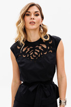 Рубашка прямого свободного кроя выполнена из черного полотна с контрастным цветочным принтом. характеристики: прямой крой, отложной воротник, застежка центральная на петли пуговички, рукав спущен, по переду крупные накладные карманы, в боковых швах разрезы. Длина по спинке 67, длина рукава от края горловины 86 см.