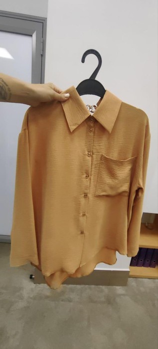Основа безупречного гардероба от ЧАРУТТИ. Рубашка, которую можно накинуть поверх купальника на пляже, сочетать с прямыми брюками для офиса или носить с джинсами на прогулке. Теплый оттенок сливается с любым образом, как финальный аккорд в идеальной мелодии стиля. Рубашка свободного кроя. Хорошо смотрится на любом типе фигуры. Накладной карман по передней части изделия. Есть треугольный вырез по верхней части спинки изделия. Дополнен металлическим аксессуаром в виде цепи. Рубашка хорошо смотрится в заправленном виде и навыпуск.