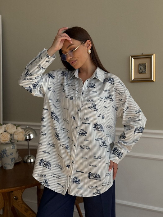 Блузка с центральной застежкой и планками на 7 прорезных петель и пуговиц.