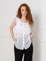 Хлопковая блузка-рубашка прямого силуэта. Рукав длинный рубашечный на манжете, воротник отложной рубашечный. По полочкам и спинке горизонтальные застроченные декоративные складки В боковых швах по низу разрезы