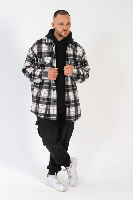 Рубашка мужская из тканого полотна с рисунком в крупную клетку, длинными втачными рукавами с разрезами на притачных манжетах, застегивающимися на обметанные петли и пуговицы, фигурной линией низа и стояче-отложным воротником. Полочки - с двумя нагрудными карманами и клапанами фигурной формы. Спинка - с притачной кокеткой, выкроенной по косой. В швах соединения манжет с рукавами обработаны по одной складочке. При эксплуатации изделия следует обратить внимание на то, что после ВТО и стирки материал дает усадку по ширине и длине.