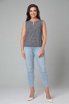 Укороченная рубашка из хлопка прямого кроя со спущенной линией плеча. Горловина обработана рубашечным воротником с отрезной стойкой. Застёжка центральная на кнопки. Есть нагрудные карманы и в боковых швах. Низ рукава обработан притачной манжетой, застёгивается на кнопки. Изделие без подкладки.