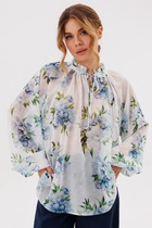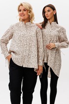 Рубашка прямого силуэта с фигурным низом. Выполнена застежка на петли и пуговицы. По горловине стояче-отложной воротник с отрезной стойкой. По спинке кокетка и склада на свободу движения. Рукав рубашечного кроя.Перед рубашки декорирован дизайнерской вышивкой.