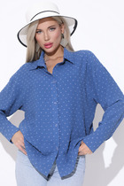 Trend Alaçatı Stili Kadın Bebe Mavi Geniş Manşetli Kol