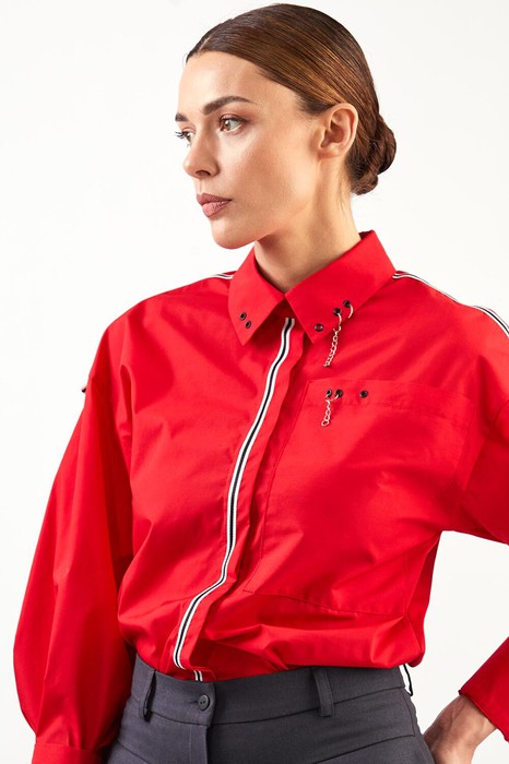 - на воротнике декор в виде люверсов и колец с цепочкой