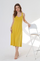 Подобно нераскрывшемуся бутону на тонком стебле, представленный сарафан создаёт неповторимый силуэт женской фигуре. Это достигается благодаря оригинальному крою юбки, а уравновешивает округлые формы низа – прямой и сдержанный лиф. Жатая текстура льна на этой модели, как элемент декора - соединяет воедино силуэтное разнообразие.