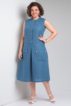 Джинсовый сарафан с вышивкой и кружевом. Резинка на талии, открытые плечи, короткие рукава, общая длина чуть ниже середины бедра. Несколько вариантов расцветки — черный джинс, бежевое кружево, розовое кружево, белое кружево. Размеры от 42 до 52. Есть розница.