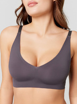 Бюстгальтер-топ из эластичного рибового полотна в вертикальный рубчик с мягким подкладом и  съемными вкладышами.  Без каркасов и боковых корсетных вставок. Регулируемые не съемные тонкие бретели.. Брендированная лента под грудью.