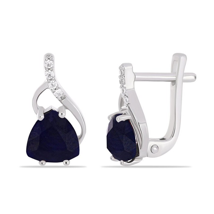 Серьги, арт.658131 Серебро Серебро 925, 2,81 гр., 2 сапфир корунд триллион 7 мм/2.47 ct