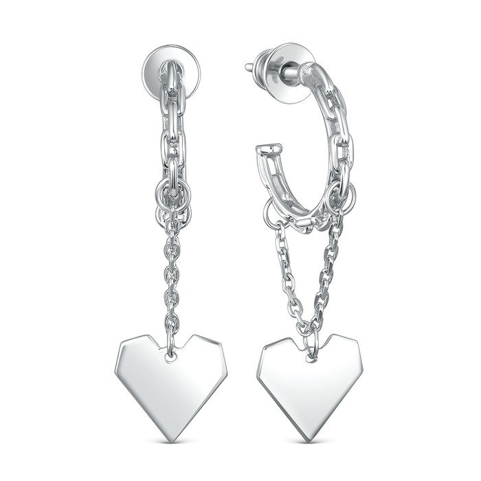 Совместные покупки Магнитогорск Ювелирные украшения и бижутерия Серьги — Серьги цепи из серебра родированные - Сердца 925 пробы 220-10-023р