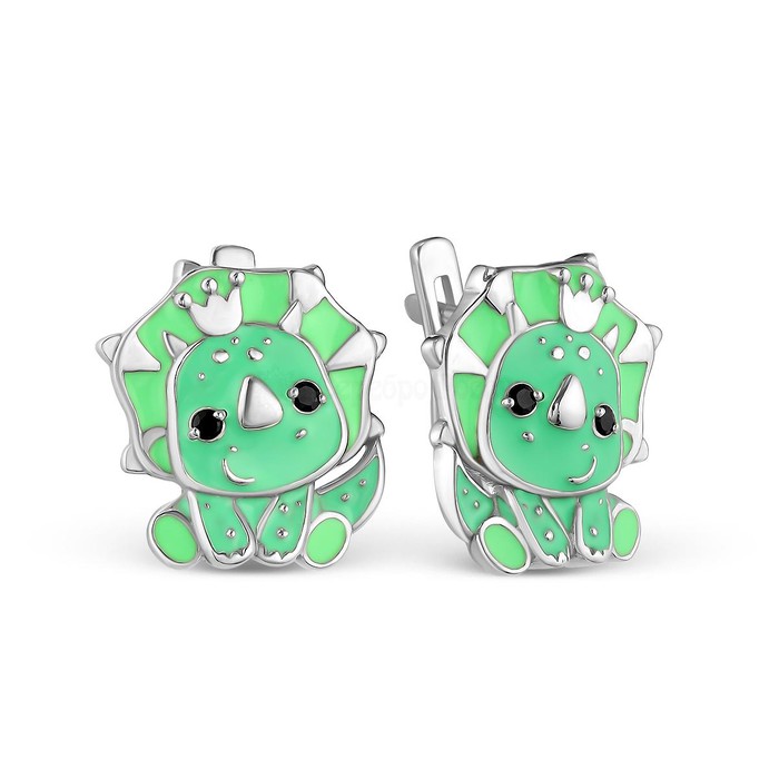 Серьги детские из серебра с эмалью и фианитами родированные