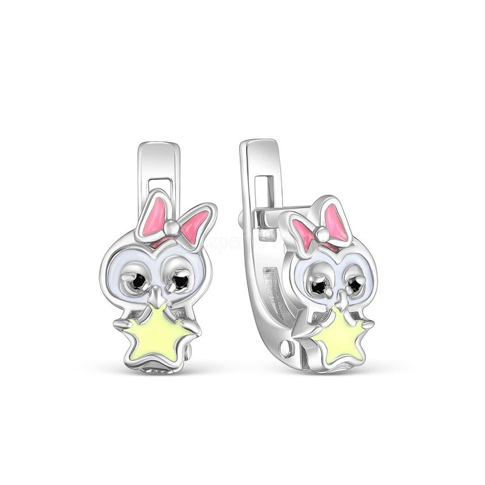 Совместные покупки Магнитогорск Детские аксессуары Украшения, бижутерия — Серьги детские из серебра с эмалью и фианитами родированные - Совушки