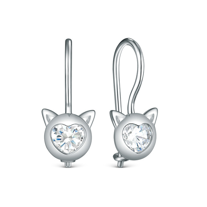 Совместные покупки Магнитогорск Ювелирные украшения и бижутерия Серьги — Серьги детские из серебра с фианитами родированные - Кошки S2180581010